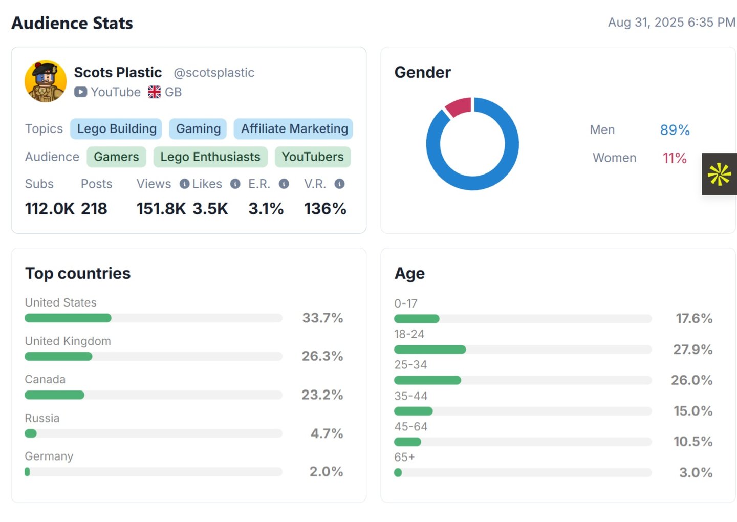 Scots is a content creator who combines Lego Building, Gaming, and Affiliate Marketing to produce unique and entertaining videos. His audience includes gamers, Lego enthusiasts, and YouTubers who appreciate his creativity, hands-on approach, and ability to turn hobbies into engaging visual content. With a mix of imagination and strategy, he continues to inspire fans interested in both play and productivity.
